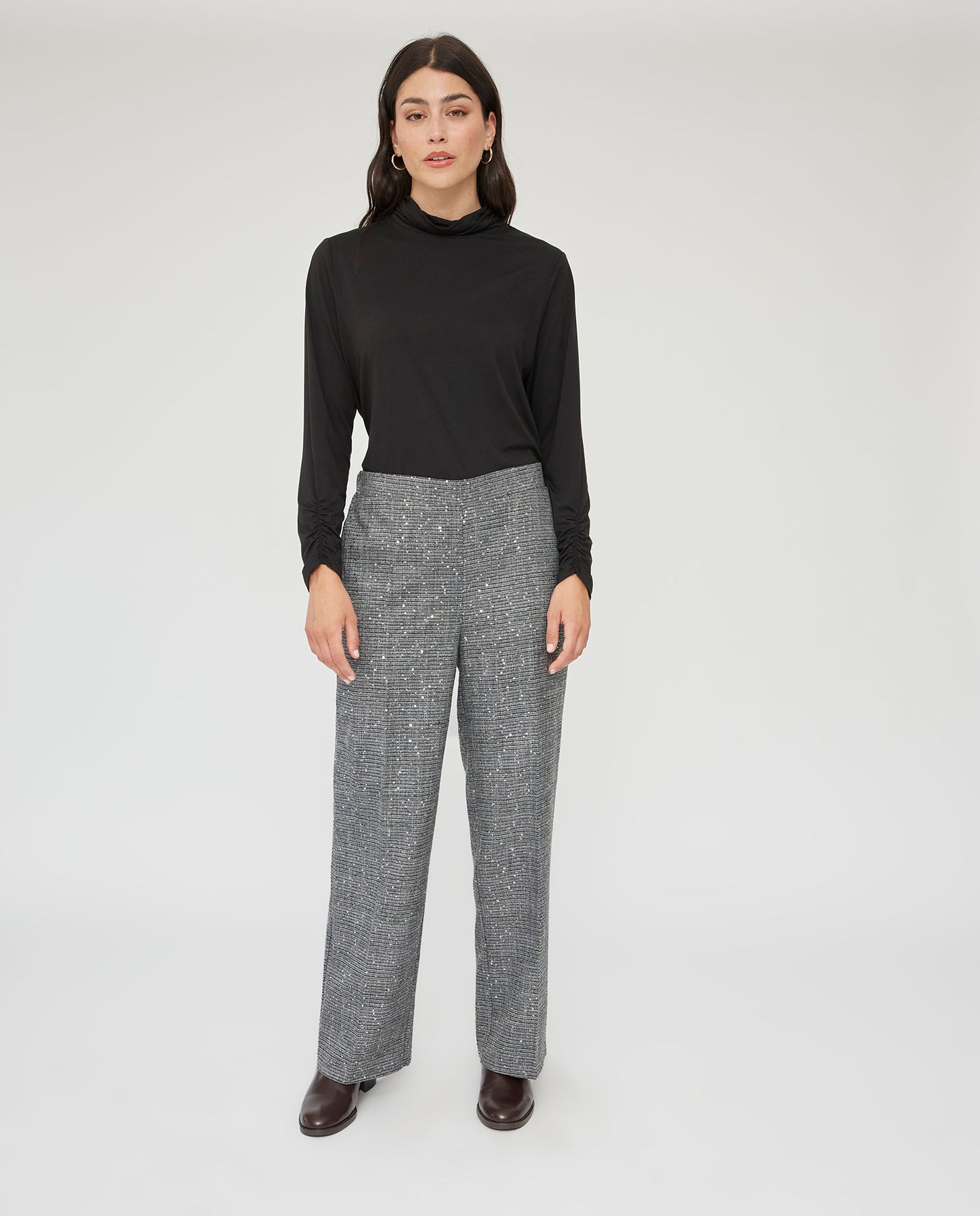 PANTALON RECTO DE CUADROS CON LENTEJUELAS GRIS