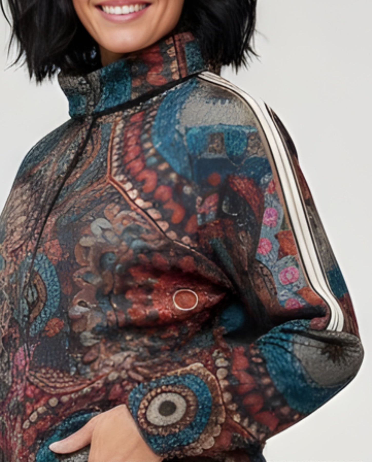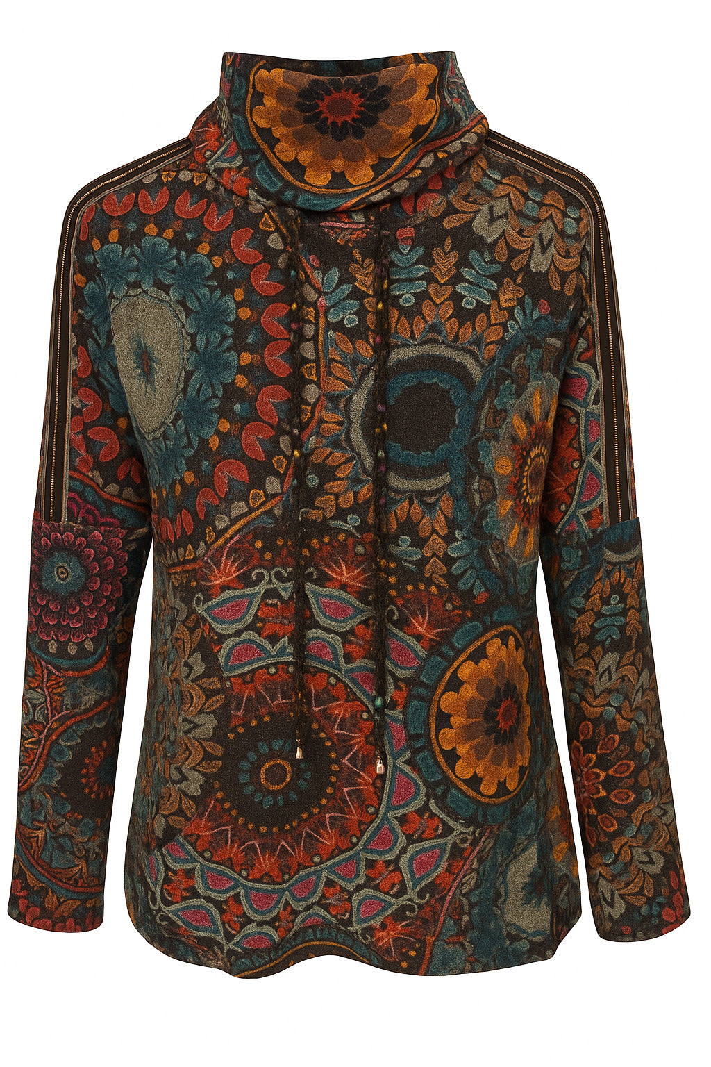 Sueter Estampada Con Cuello Buche Ajustable  Marrón